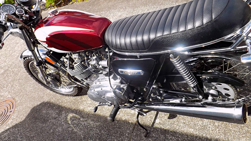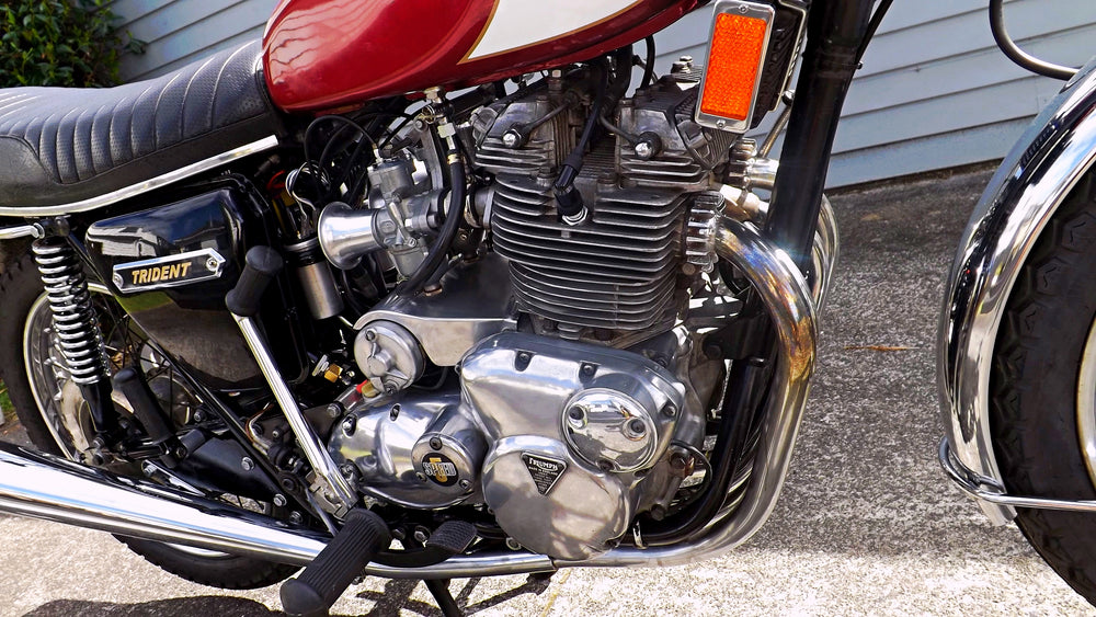 Ex-USA barn find 1975 Triumph Trident T160 this bike has been off the road since the early 90's. We imported it and bought it back to life. It has done only a genuine 7000 miles since new. It's matching numbers and is in extremely original condition still running on points ignition. It's electric start and this is working fine. Triumph T160's are getting harder to find these days especially in such original condition.