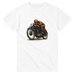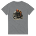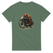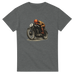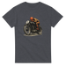 This T-shirt features a detailed vintage style illustration of a classic racer at full tuck, capturing the grit and focus of old school motorcycle competition. The artwork shows a rider in period gear leaning into the throttle on a stripped back race bike, with hand drawn shading and warm tones that give it a real timeless feel.
