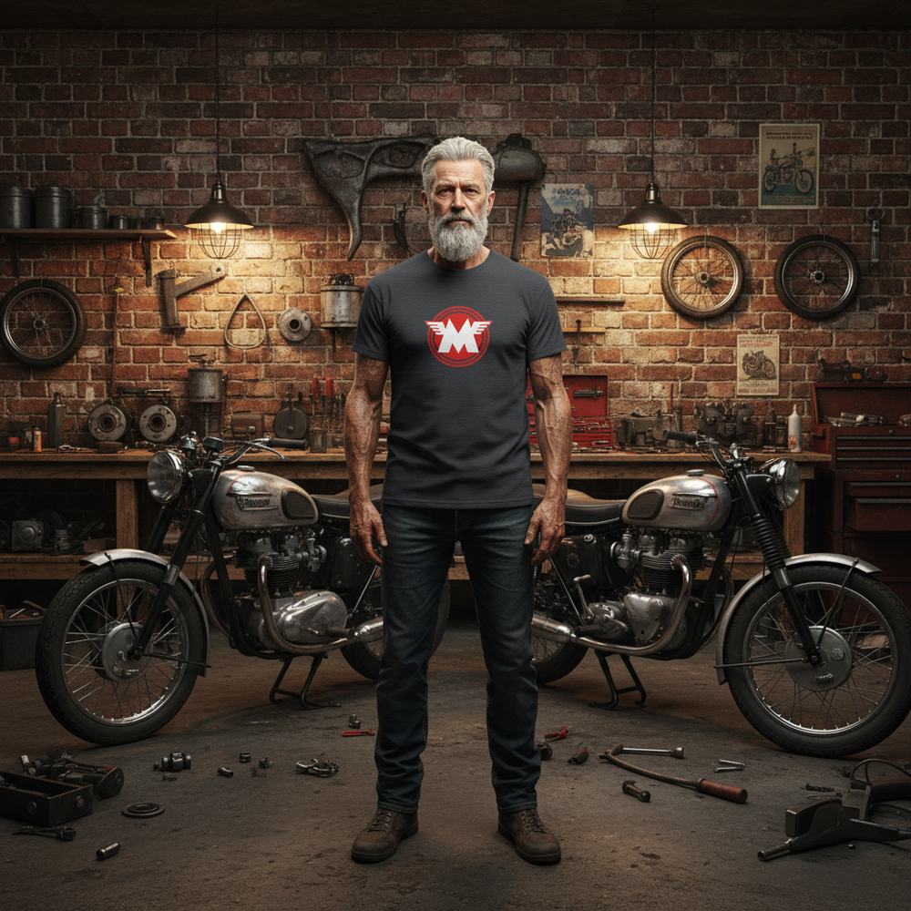 This T shirt pays tribute to Matchless, a marque known for building tough, reliable motorcycles that earned their reputation through real world riding and competition. From long distance road work to trials and racing, Matchless machines were built to last and gained a loyal following because of it.
